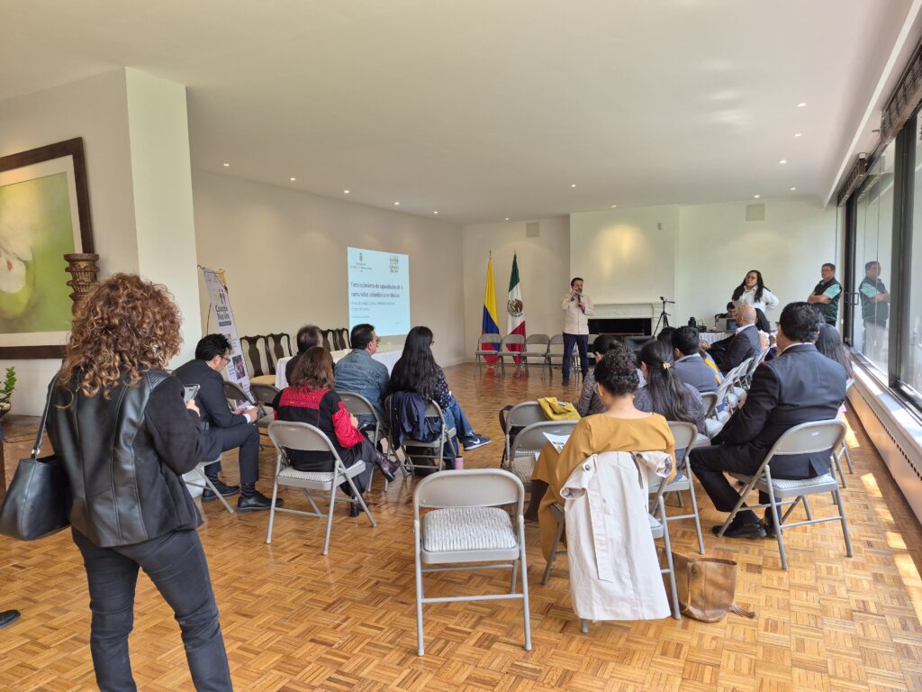 El pasado martes 17 de marzo se llevó a cabo el evento “Tejemos Futuro desde la Diáspora Colombiana en México” en la Residencia de la Embajada de Colombia en México. La iniciativa fue organizada por el Grupo de Trabajo Interno de la Dirección de Asuntos Migratorios, Consulares y de Servicios Ciudadanos de la Secretaría de Relaciones Exteriores, Colombia nos Une. El encuentro reunió a representantes institucionales, liderazgos y organizaciones de la sociedad civil colombiana residentes en México con el objetivo de dialogar sobre tres áreas consideradas prioritarias para la diáspora: emprendimiento, cultura y derechos humanos.